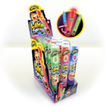 Κάθε τεμάχιο περιέχει υγρή καραμέλα με έντονες γεύσεις, την oποία τα παιδιά μπορούν να ψεκάσουν στο στόμα τους, προσφέροντας μια διαδραστική και συναρπαστική εμπειρία κατανάλωσης. Σε γεύσεις : φράουλα, μήλο , βατόμουρο.