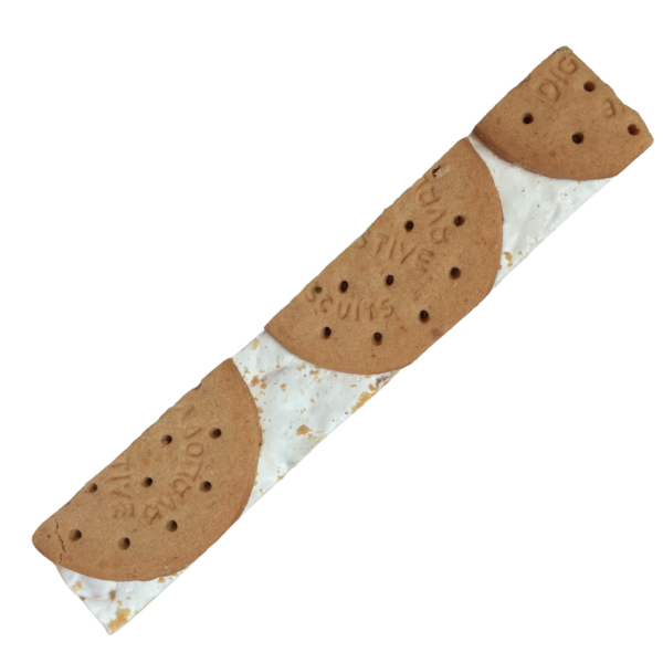 Τα τραγανά μπισκότα digestive ενσωματώνονται αρμονικά στο μαντολάτο, δημιουργώντας έναν απολαυστικό συνδυασμό γλυκύτητας και μπισκοτένιας γεύσης σε κάθε μπουκιά.